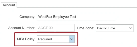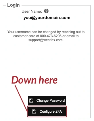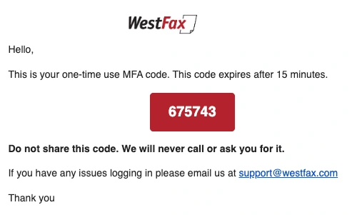 Required: A user will be prompted to add and use 2FA on the next login to the WestFax portal, and the user cannot disable 2FA.